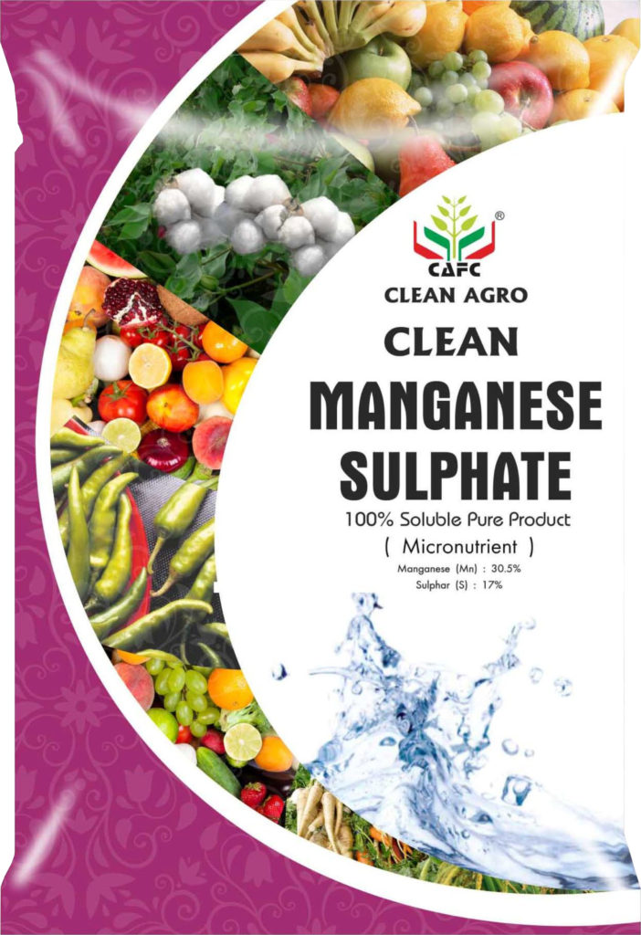 CLEAN MANGANESE SULPHATE is a water-soluble salt formulation containing Manganese -one of the essential micronutrients required by plant which plays a key role in photosynthesis. Clean Manganese Sulphate fertilizer widely used as basal fertilizer because Manganese is commonly deficient in soils with apH level above 6.5.