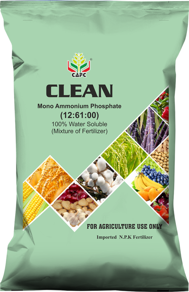 Clean Bio Mono Ammonium Phosphate (12:61:00) is a high-quality water-soluble fertilizer used to enhance crop productivity. It provides essential nutrients like nitrogen and phosphorus, crucial for plant growth and development. Its balanced nutrient ratio makes it ideal for all stages of crop growth.