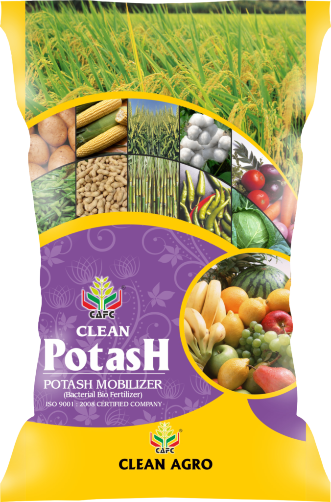 CLEAN POTASH Bio Potash enhances the potash uptake in plants leading to higher productivity. Improve the fertilization of soil. Solubilise the fixed potassium into exchangeable form for the plants Stimulate flowering and fruiting Exudates of the root and secrete organic acid and enzymes. Secretes Growth Hormones to increase crop productivity. Add Luster, Sweetness and quality of produce. Increase sucrose content in crop. Other benefits: Bio Potash does not disturb the ecological balance. Decrease the hardness of soil, increase the porosity of soil and water holding capacity. Restore the resistant power and immunity in soil root zone area. Soil becomes live by increase the loading of microbes. Reclaim the salty and saline land and convert worthy for farming simultaneously and help to de-compose the botanical waste in soil